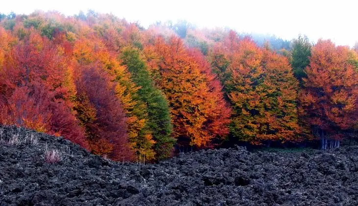 Auf dem östlichen Hang findet man eine Besonderheit: Wälder des Nordens. Untypisch für die mediterrane Vegetation gelten diese "boschi nordici" als eine Besonderheit auf dem Ätna.