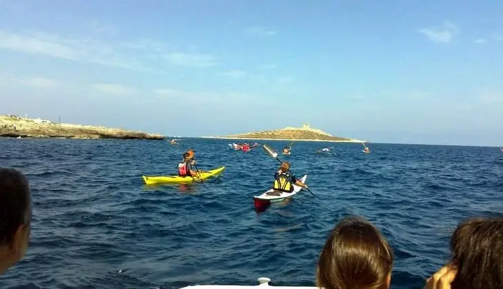 Verleih von Einsitzer- oder Zweisitzerkajak, um damit an der wunderschönen Isola delle Femmine zu paddeln.