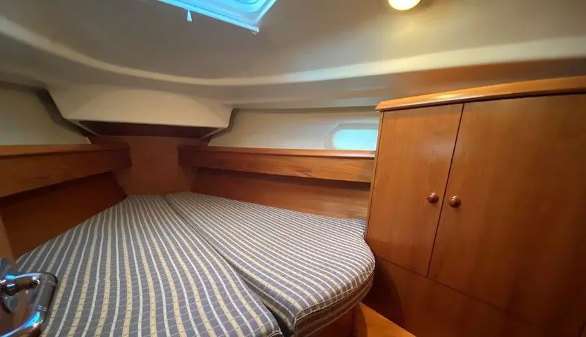 The boat is a Janneau Sun Odyssey 34.2 (2 double cabins and 1 bathroom)