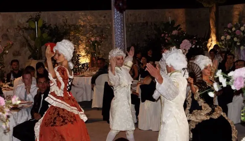 - Creation, planning, rehearsals, technical management, direction and coordination. Sound system with microphone. Lights, including lasers, moveable lights, special effects, light technician. Professional film maker. Sound and light technicians. DJ. 4 artists (juggler, professional dancers). High quality costumes, accessories for the artists, make-up and hair included. Decorative Baroque masques. Stage.