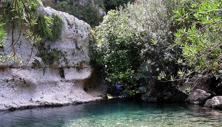 A beautiful trail carved into the rock will take you to visit the ancient pre-Hellenic and Byzantine settlements, the Pipistrelli (bats) cave and the old disused railway line, next to wonderful mirror like pools adorned by lush vegetation.