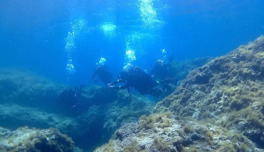 - Shrimp Grotto: the name hints at who resides in this place - populated with shrimps. Within the cave there is an air bubble in which it is possible to remove regulator and breathe.