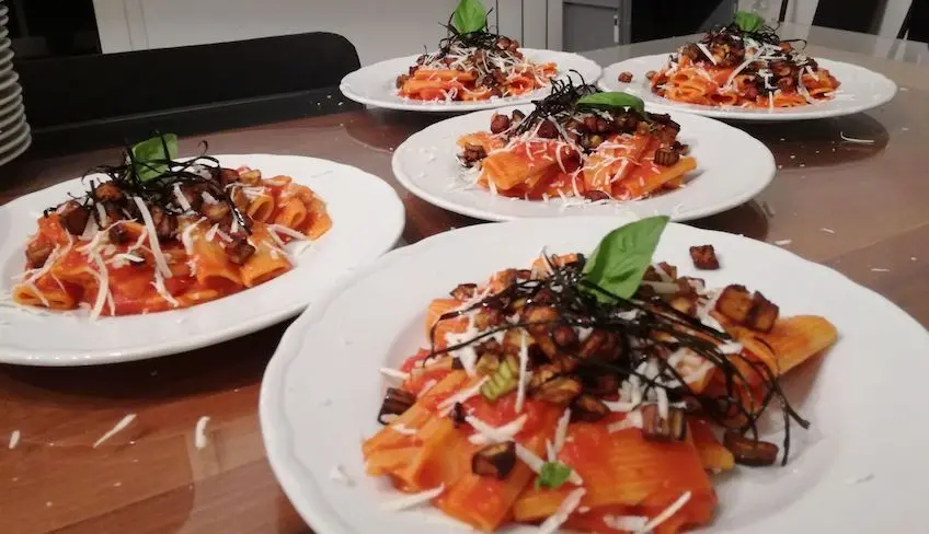 Alcuni esempi? Il menù di carne potrebbe prevedere la caponata, rigatoni alla norma, involtini di carne e salsiccia, cannolo siciliano. Il menù di pesce potrebbe prevedere insalata di mare, busiate al ragù di tonno rosso e cannolo siciliano.