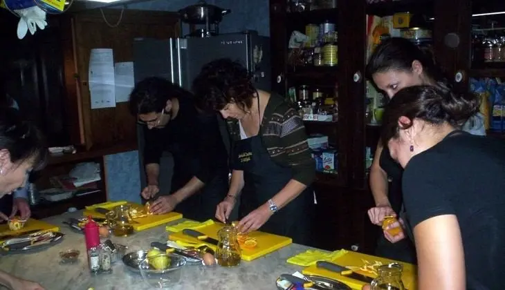 Secondo: frittura mista o calamari arrostiti.In base al numero di partecipanti e al periodo dell'anno, le location in cui si effettuerà il pranzo o la cena potrà variare; una villa immersa nel verde di Carini a 20 km da Palermo con grande sala da pranzo e giardino oppure un appartamento con terrazza e una grande sala da pranzo.