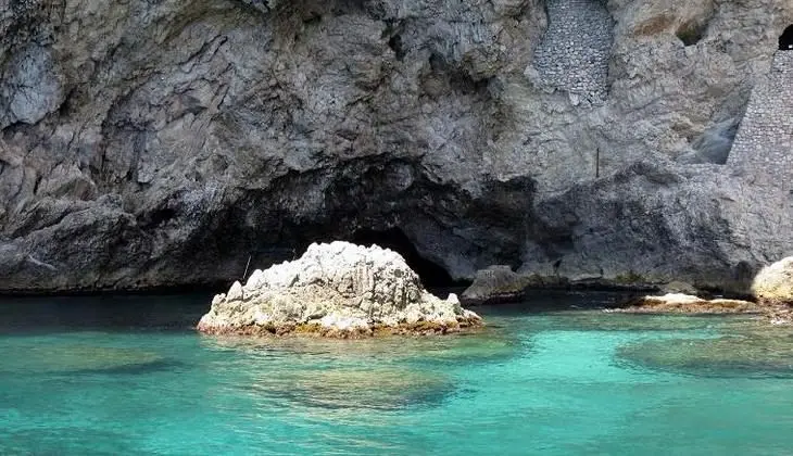Visita della “Grotta Azzurra”, ingresso e sosta all’interno della Riserva naturale Isola Bella nelle cui acque è possibile ammirare una varietà multicolore di pesci, fra le spettacolari formazioni rocciose sottomarine.