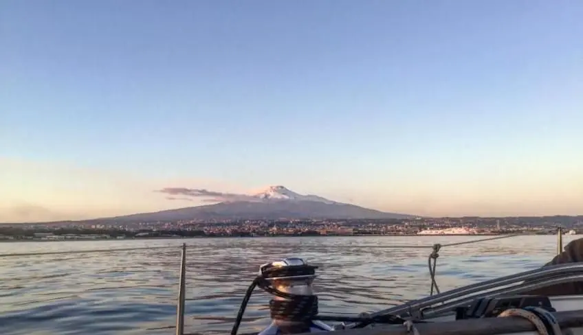 La partenza è prevista alle ore 19:00. Salirete a bordo di una barca a vela e durante la navigazione potrete usufruire di una delle cabine della barca. Inizierete la navigazione dirigendovi verso il largo della Playa di Catania e potrete fare il bagno sotto il cielo rossastro del tramonto. Dopo qualche tuffo, potrete gustare l'aperitivo, che prevede gustosi stuzzichini tra cui salumi, formaggi, crostini e tante altre delizie, ed un calice di vino bianco. Il rientro in porto è previsto alle ore 21:00.