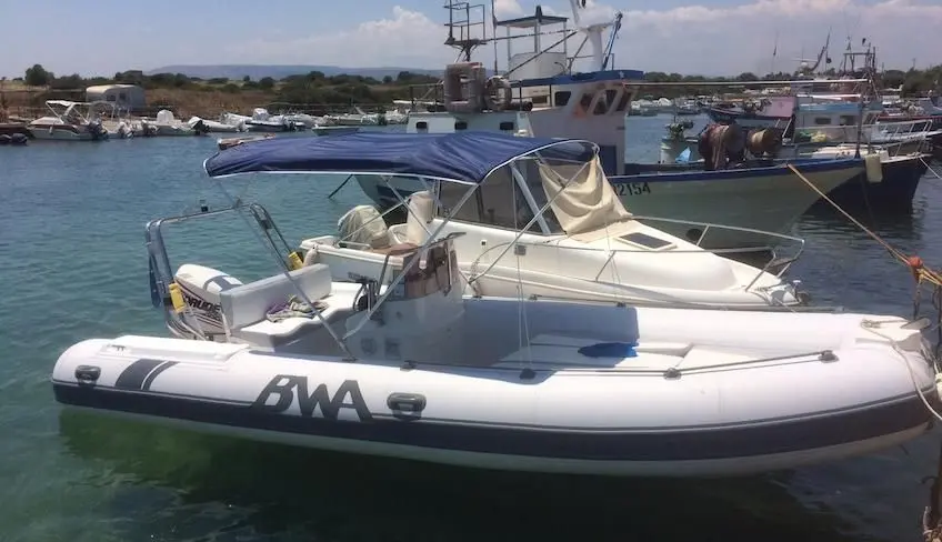 Il gommone è un 650 bwa con motori evinrude da 150 cv. Max 8 ospiti a bordo.