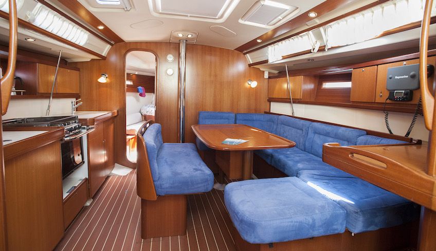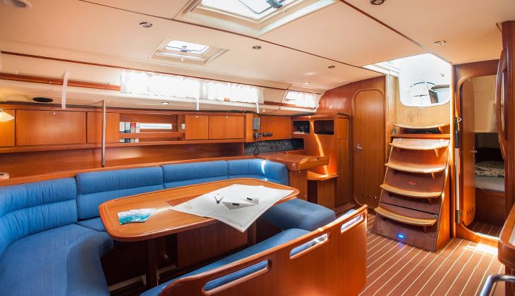 - Dufour 455 Grand Large с 4 каютами и 3 ванными комнатами, в которых могут разместиться 10 человек (2 места в столовой)
