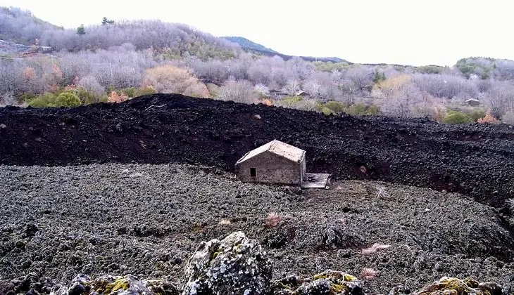 ДЕНЬ 2. Пешеходная экскурсия по северо-восточной части Этны к Пьяно Провенцана - разлому, образовавшемуся в результате извержения вулкана в 2002 году, к убежищу на горе Тимпа Росса и в пещеру дей Лампони. Упакованный обед. Ужин и ночь на горе Этна