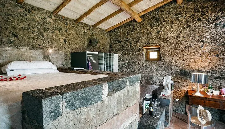 Курорт с современным дизайном Monaci delle Terre Nere расположен у самого подножия вулкана в окружении зелени в городке Зафферана Этнеа (Катания).